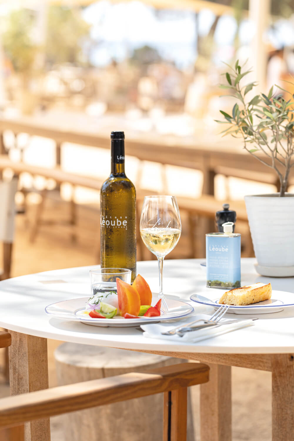 La magie Léoube, dans l'un des plus beaux sites protégés d'Europe. Depuis son rachat il y a 25 ans, ce prestigieux domaine viticole, dont les vignes et les oliviers dévalent vers la mer, est conduit dans le respect de l’environnement. Pendant les beaux jours, le Café Léoube, installé sur la plage du Pellegrin, permet de prolonger l'expérience autour d'une authentique table méridionale où les productions du domaine sont reines : vins dans les trois couleurs bien sûr, mais aussi huile d’olive vierge extra ou fruits et légumes récoltés dans le verger et le potager.
