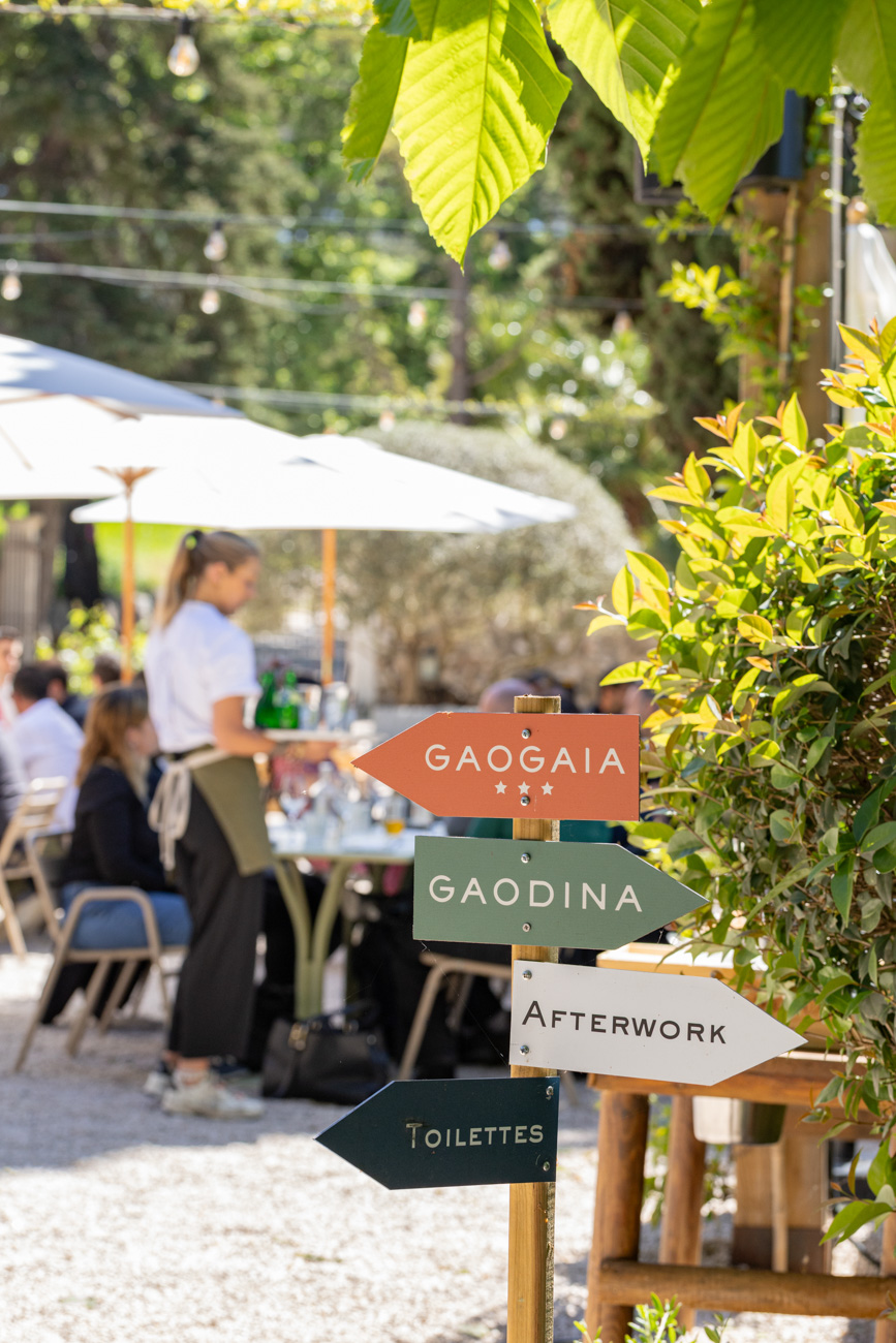La polyvalence d’un lieu verdoyant et ensoleillé. Dans une bastide provençale rénovée du xviiie siècle, au cœur de la campagne aixoise et à 10 minutes du centre-ville, Gaodina propose des moments de plaisir et de partage de 7 h à minuit. Le restaurant, qui joue la carte de la brasserie gourmande le midi et du repaire de chef le soir, s’anime au rythme de la cuisine écoresponsable et méditerranéenne de Naïm Chhiba. Les produits sont majoritairement bio et la carte change au minimum toutes les semaines.