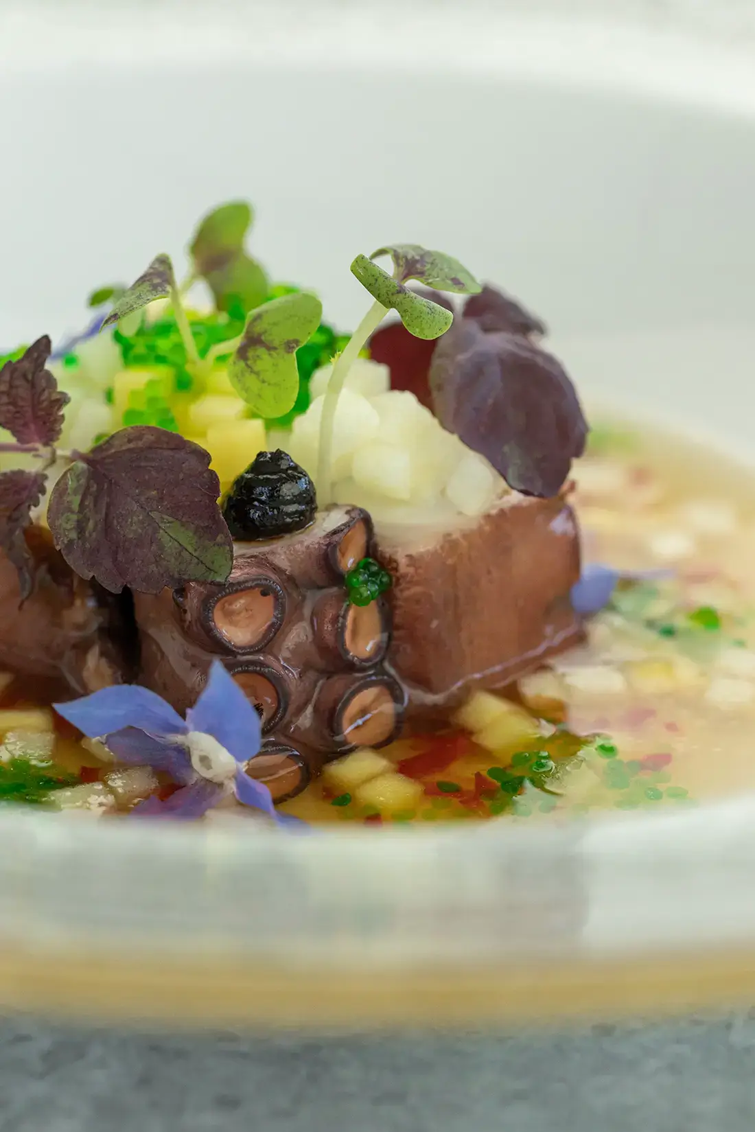 Le festin avec vue ! Au pied de la Sainte-Victoire, côté nord, cet hôtel 4* offre un panorama à couper le souffle entre massif montagneux, verdure environnante et château de Picasso. Dans cet écrin, le Brésilien Mateus Marangoni, passé chez Troisgros au Brésil et au Mandarin Oriental de Barcelone, signe une carte audacieuse, voyageuse et raffinée.