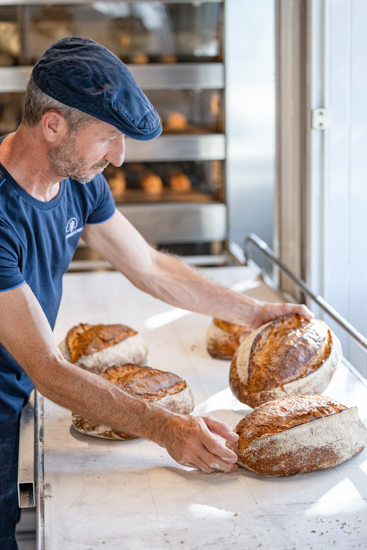 Pain de campagne, complet, courge-tournesol, aux olives, aux noix, baguette Philomène, pains spéciaux, pain de riz, brioche nature ou au chocolat, pompe
