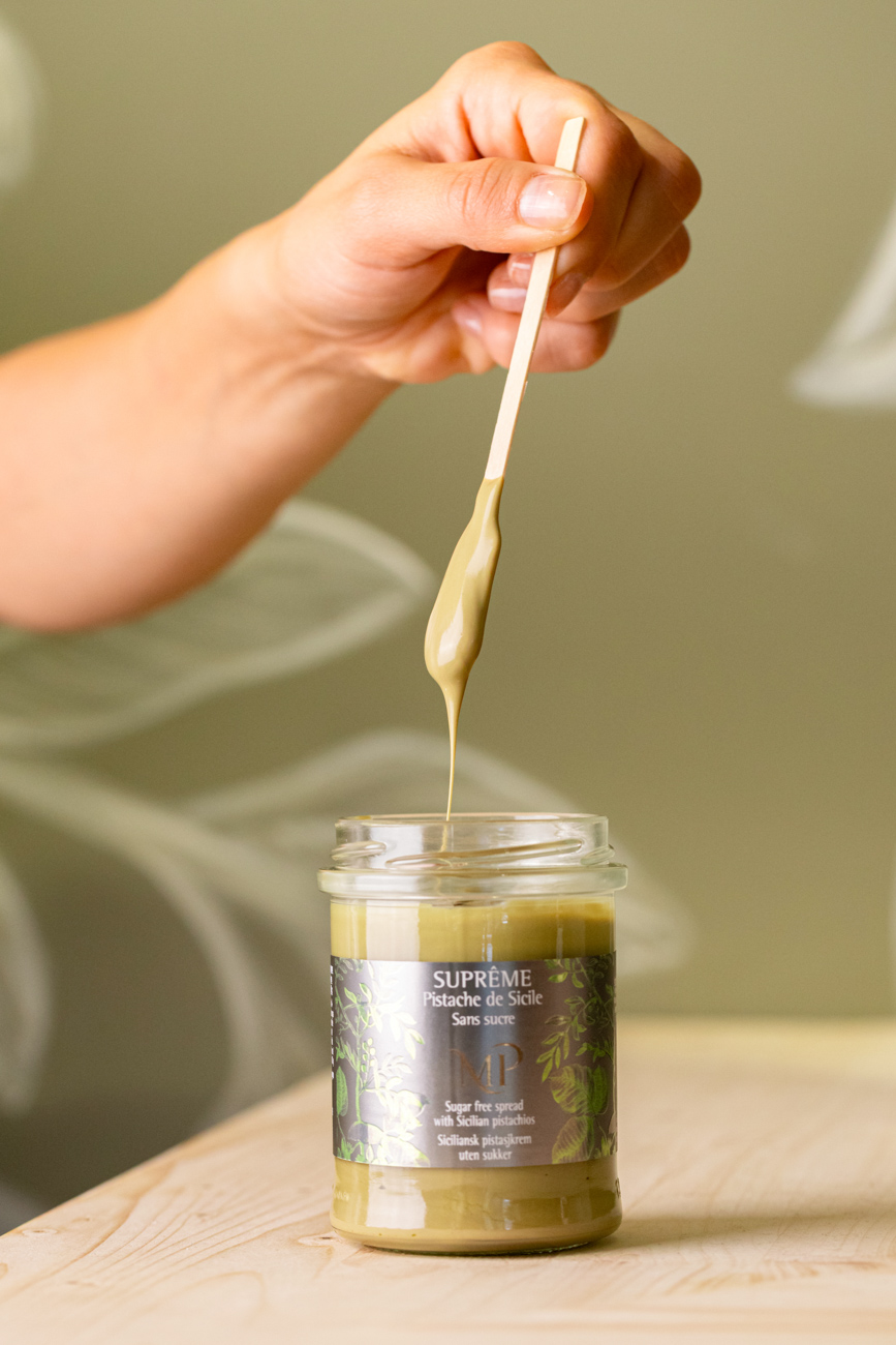 La gamme d’épicerie fine et d’aides culinaires, à base de pistaches ou de feuilles de pistachier aux parfums résineux.