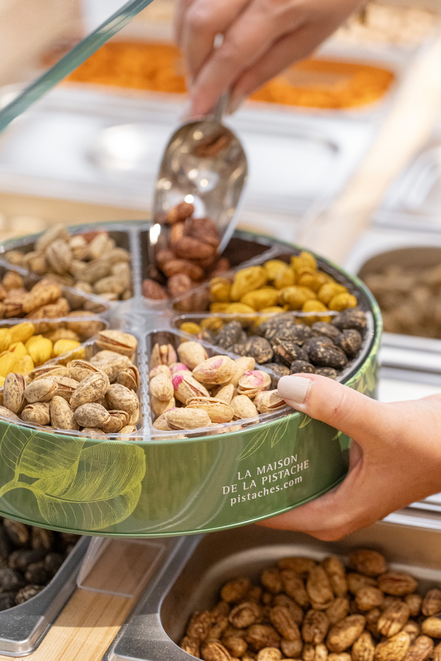 Dès l'entrée en boutique, s'enivrer des effluves caractéristiques des pistaches torréfiées sur place.