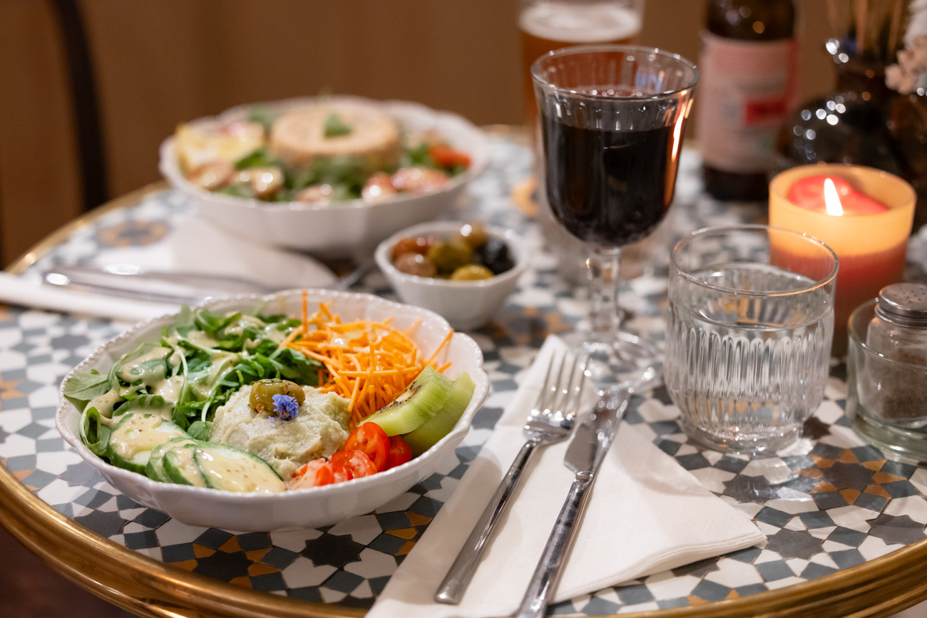 L’espace café-restauration, où l’on s’attable à toute heure pour déguster une boisson chaude ou froide, accompagnée d’une pâtisserie (avec ou sans gluten) préparée par Sergio, le conjoint pâtissier de Mathilde.