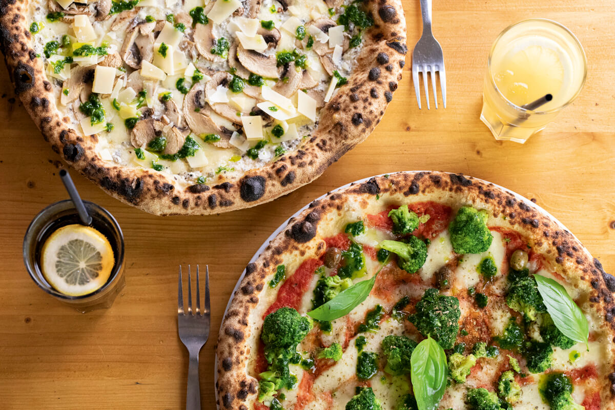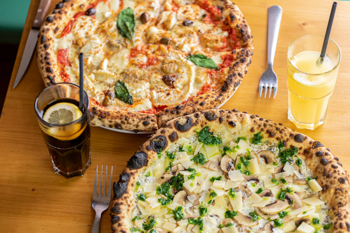La qualité des ingrédients : sauce tomate maison, charcuteries artisanales, fromages labellisés, olives taggiasche, anchois de Cetara, fior di latte fraîche de Naples, légumes locaux et bio…
