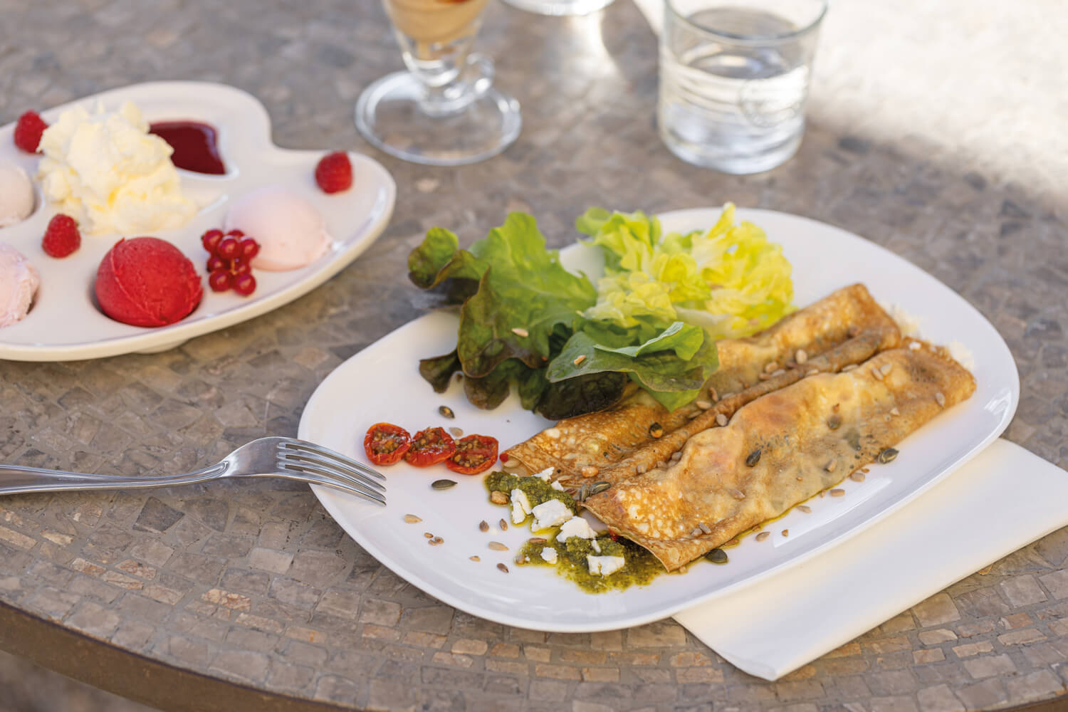 Une pause gourmande hors du temps avec vue sur les collines de Provence. À l’entrée du vieux Vernègues, dans une maison ayant résisté au tremblement de terre de 1909, cet établissement tenu par la même famille depuis 1990 fait office de crêperie et glacerie artisanales. Pour le déjeuner et le dîner, crêpes salées, salades et omelettes sont au menu.